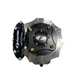 Fortin Racing, Inc. has applied over 40 years of off-road racing drive train experience to the Can-Am X3 drive line. The mission was to improve the strength and reliability of the front hub, upright, bearings, CV’s, axles, brakes and overall steering and suspension geometry. With the increased loads from larger diameter tires and wheels, heavier vehicle weights, and the demands of endurance off road racing, a complete redesign was required. Starting with the upright or bearing carrier, the stock cast aluminum part was redesigned utilizing aerospace quality 7075 billet aluminum. The upright requires new upper and lower control arms, utilizing spherical balls. The control arms must be made to Fortin dimensions to take full advantage of the steering and suspension geometry improvements. The front wheel bearings have been replaced with large 4.3” taper roller bearings. The front hub hat has been made with light 6061-T6 billet aluminum to keep rotating weight to a minimum while keeping the stock 12mm 4 bolt wheel stud pattern. For improved braking power, larger 11” diameter rotors and exclusive Fortin 4 piston radial mount race calipers by StopTech have been incorporated. Piston bore diameters have been designed to be used with the stock master cylinder. The stock metric brake line banjo fitting bolts directly on the caliper. Applying years of CV joint manufacturing experience, 300m and aerospace alloys have been used in an all-new non-plunging high angle CV joint. The CV’s are bolted to the inner and outer stub axles flanges eliminating the use of wire spring clips and making the assembly more serviceable. The high angle CV boots are fixed to removable flanges as well. The 300m axle shafts are custom made to the required length for the specific width of the car. The kit comes complete with inner stub axles that are through bolted into the rear differential.